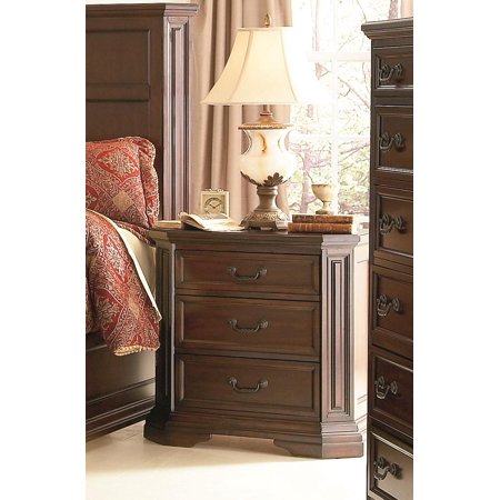 Add a bit of traditional sophistication to your bedroom with this night stand It features classic bracket feet and a wonderful deep brown finish Use the three storage drawers for your books and magazines The spacious top has plenty of space for a lamp or an alarm clock Place this night stand right next to your bed for a fabulous arrangement